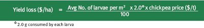 Growers and agronomists are now able to calculate how much yield they will lose if they do not control an infestation of helicoverpa in chickpea. They can calculate the point at which it is economic to control an infestation based on the potential yield loss, their costs of control, the expected grain price and their own preference for benefit:cost.