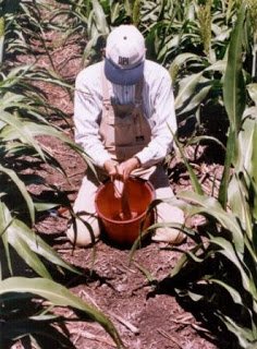 Good coverage over the plant and especially the sorghum head is critical, since a larva has to actually feed on an NPV particle to become infected with the virus. Sprays should be put on at the time of day that is best suited to getting good coverage, and this will often be in the morning.