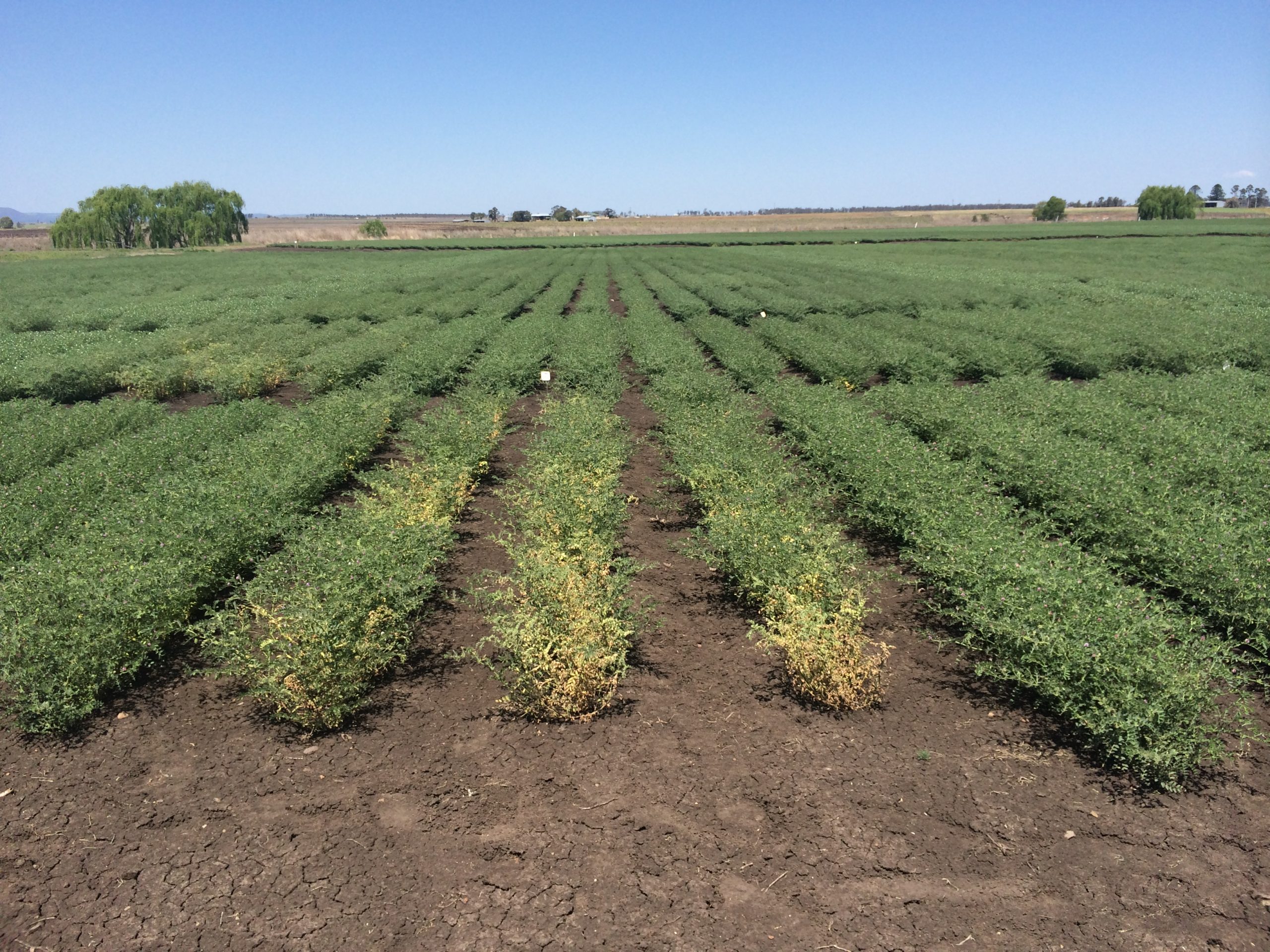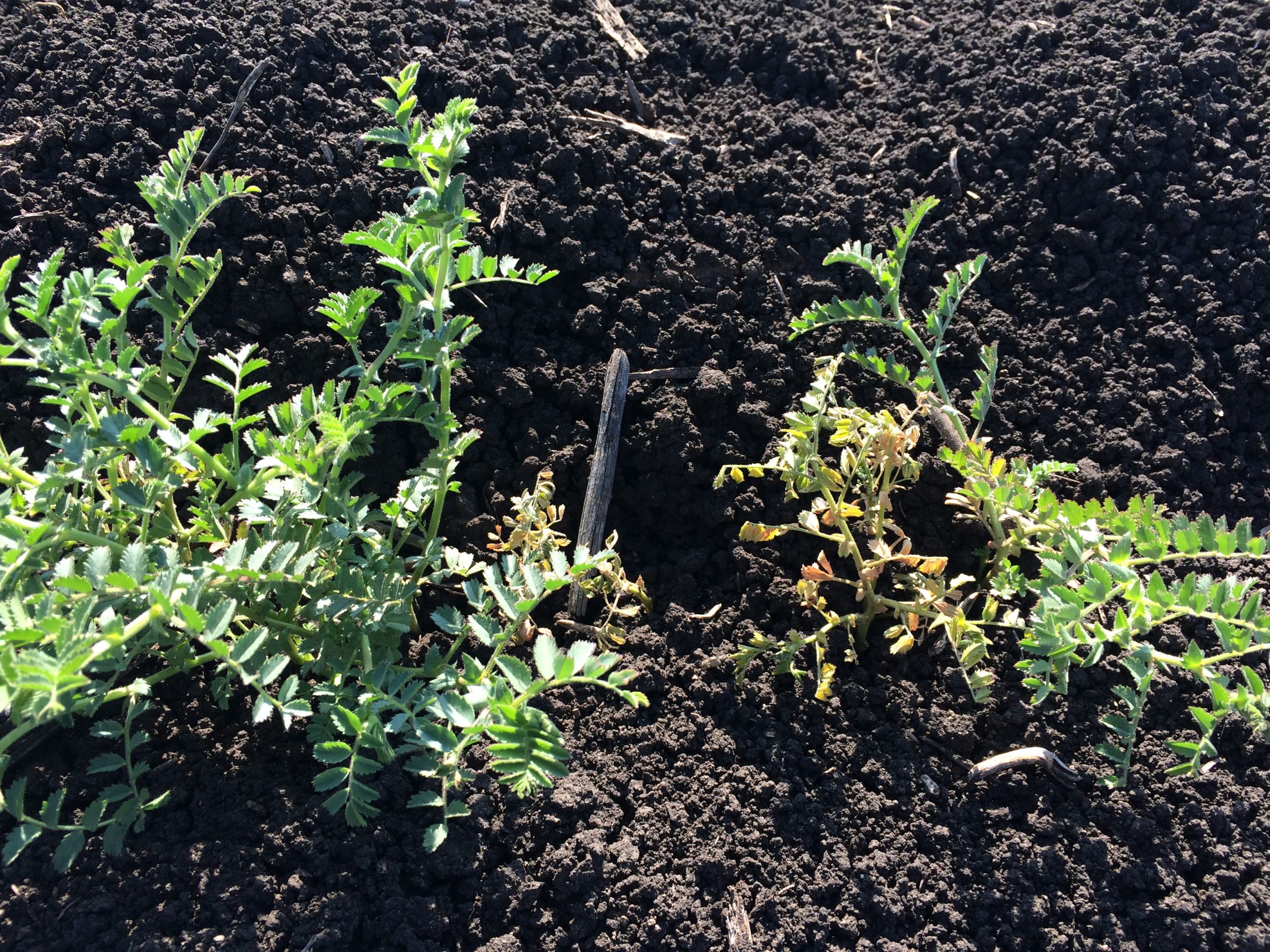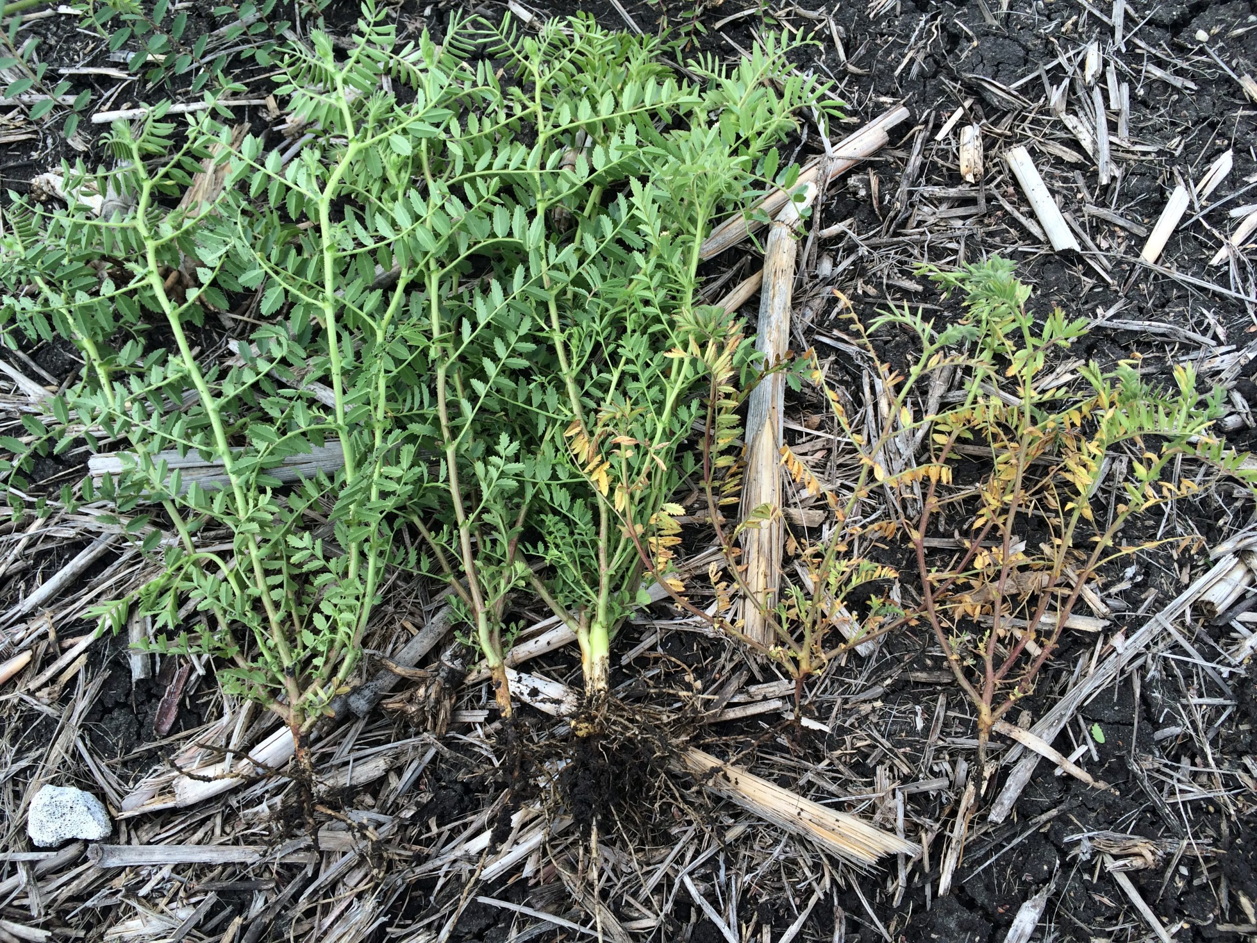 - Healthy plants compared to chickpea plants infected with Phytophthora root rot