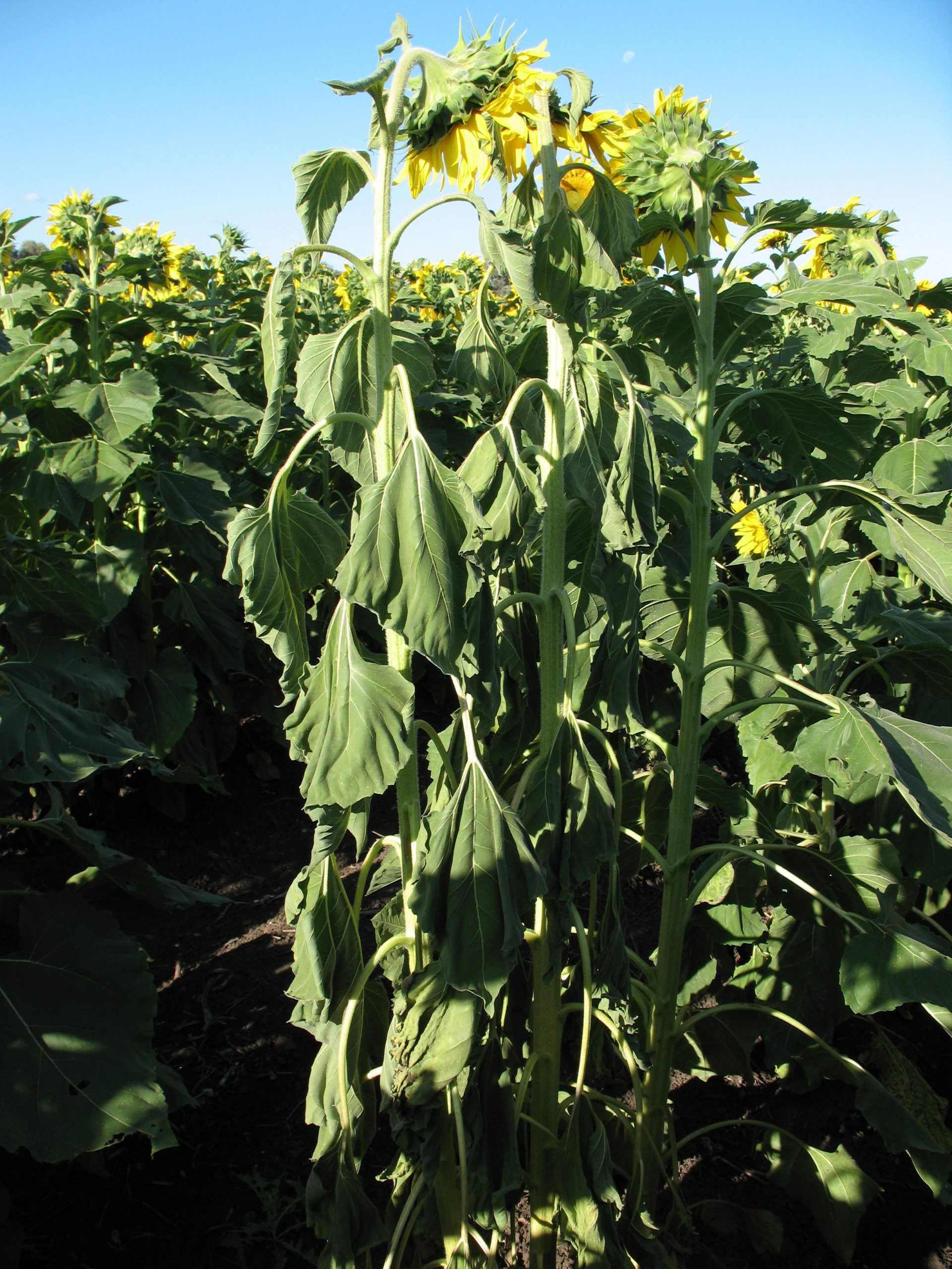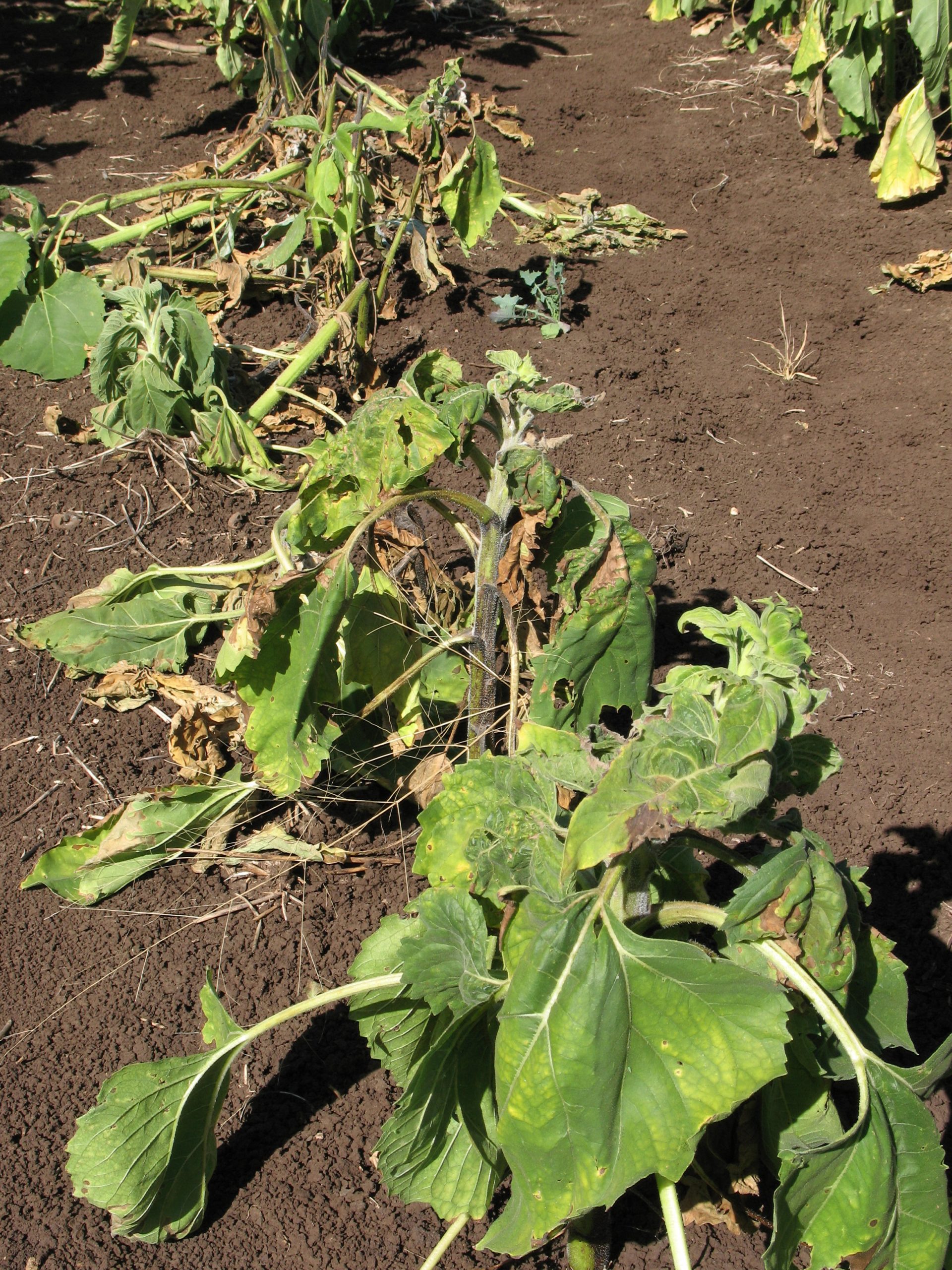 - Severe sunflower plant necrosis and death in susceptible hybrid infected with TSV