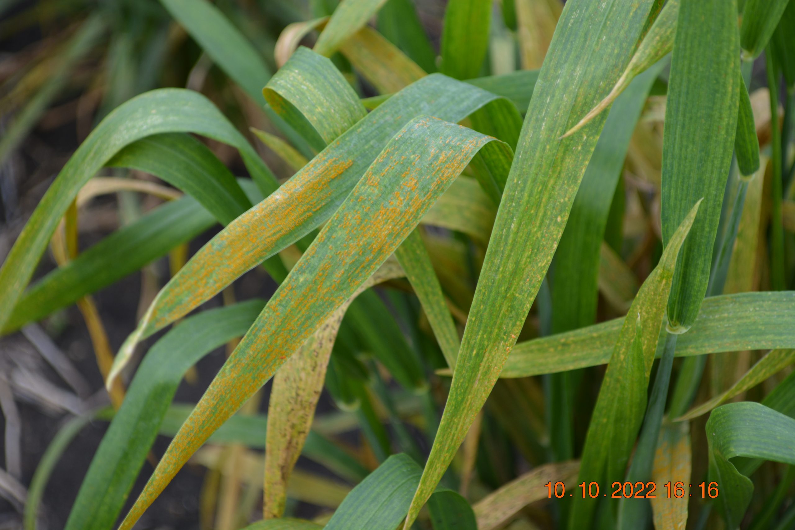 Wheat diseases Stripe rust of wheat Puccinia striiformis f. sp. tritici Yellow stripes of rust pustules on wheat leaves Small rust pustules on wheat leaf surface