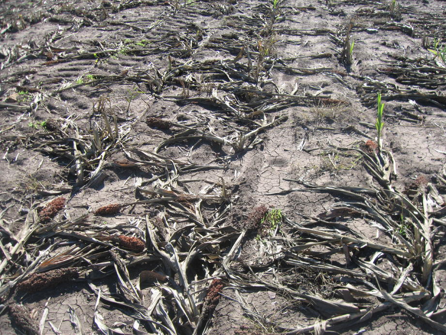 - Lodged plants as a result of charcoal rot infection