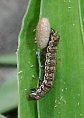 In shaking sorghum heads to make post-treatment assessments, parasitised larvae may be dislodged free of the pupal cocoon attached to them. Careful inspection of these caterpillars may reveal a hole in the side of some of these caterpillars, indicating prior parasitisation. These larvae will eventually die.