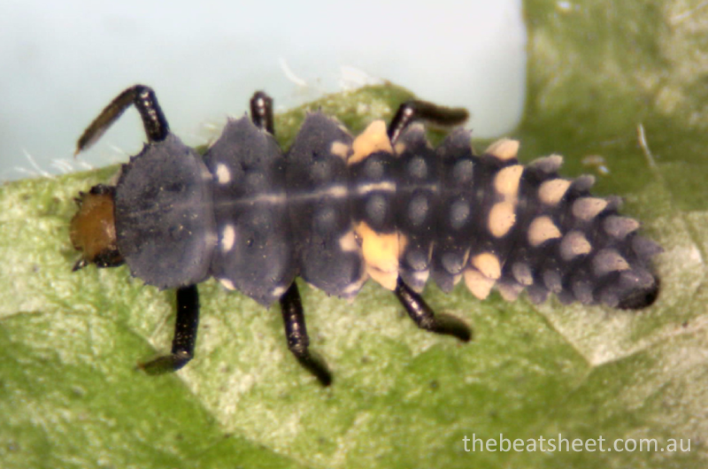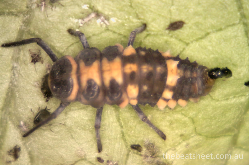 While the adult markings of most ladybird beetles are distinctive and enable species to be readily identified, the patterns on the juveniles are not as striking, especially in the earlier instars. For this reason we have developed a visual key of the larvae (available from the Beatsheet’s publications page), by collecting the most commonly found species in broadacre crops and rearing them in the laboratory.