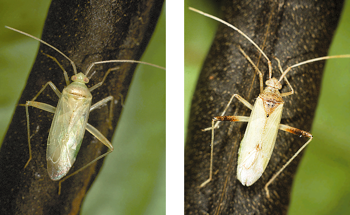 Green and brown mirid (Creontiades spp.) damage can occur at any stage, from seedling to boll filling, although crops are usually attacked before peak flowering. Feeding damage (including terminal death, abscission of young squares and bolls, and lint damage in developing bolls) can result in significant yield loss. Mirids are therefore often the target of early and mid-season insecticide applications which, in turn, can result in the disruption of the beneficial insect community in cotton crops and flaring of secondary pests such as mites, whiteflies and mealybugs.