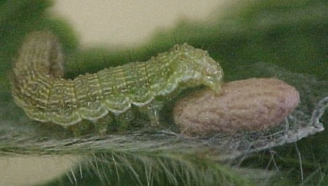 Eggs are highly susceptible to predation by predatory bugs (damsel bugs, pirate bugs), ants and beetles. Eggs are also frequently parasitised by the tiny Trichogramma wasp. Parasitised eggs turn black and are easily distinguished from newly laid eggs (white) or eggs with developing larvae (brown ring). Egg parasitism can be very high, particularly in fields that have not been sprayed.