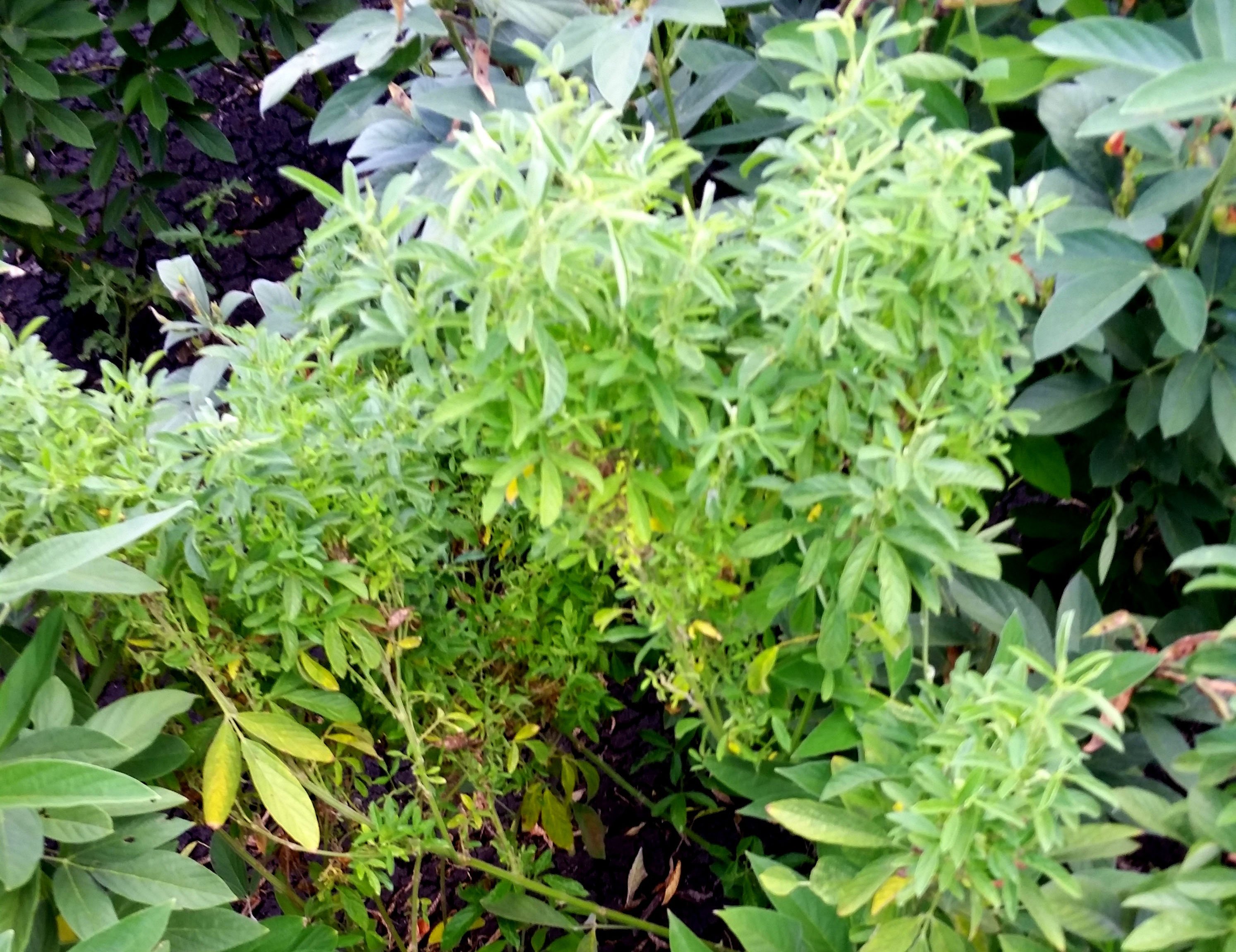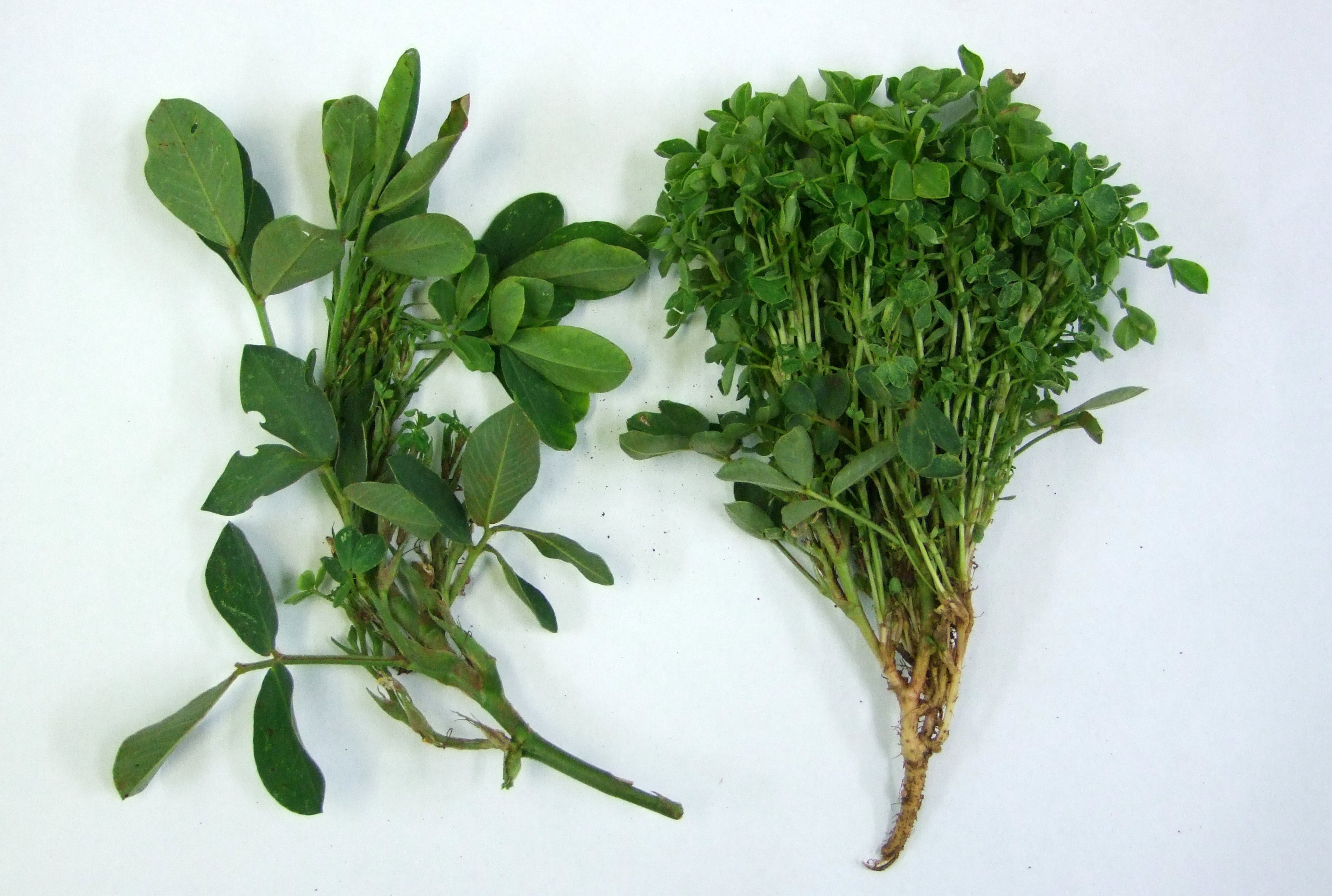 - Phytoplasma in peanuts with masses of little leaves (normal-sized leaves shown on left)