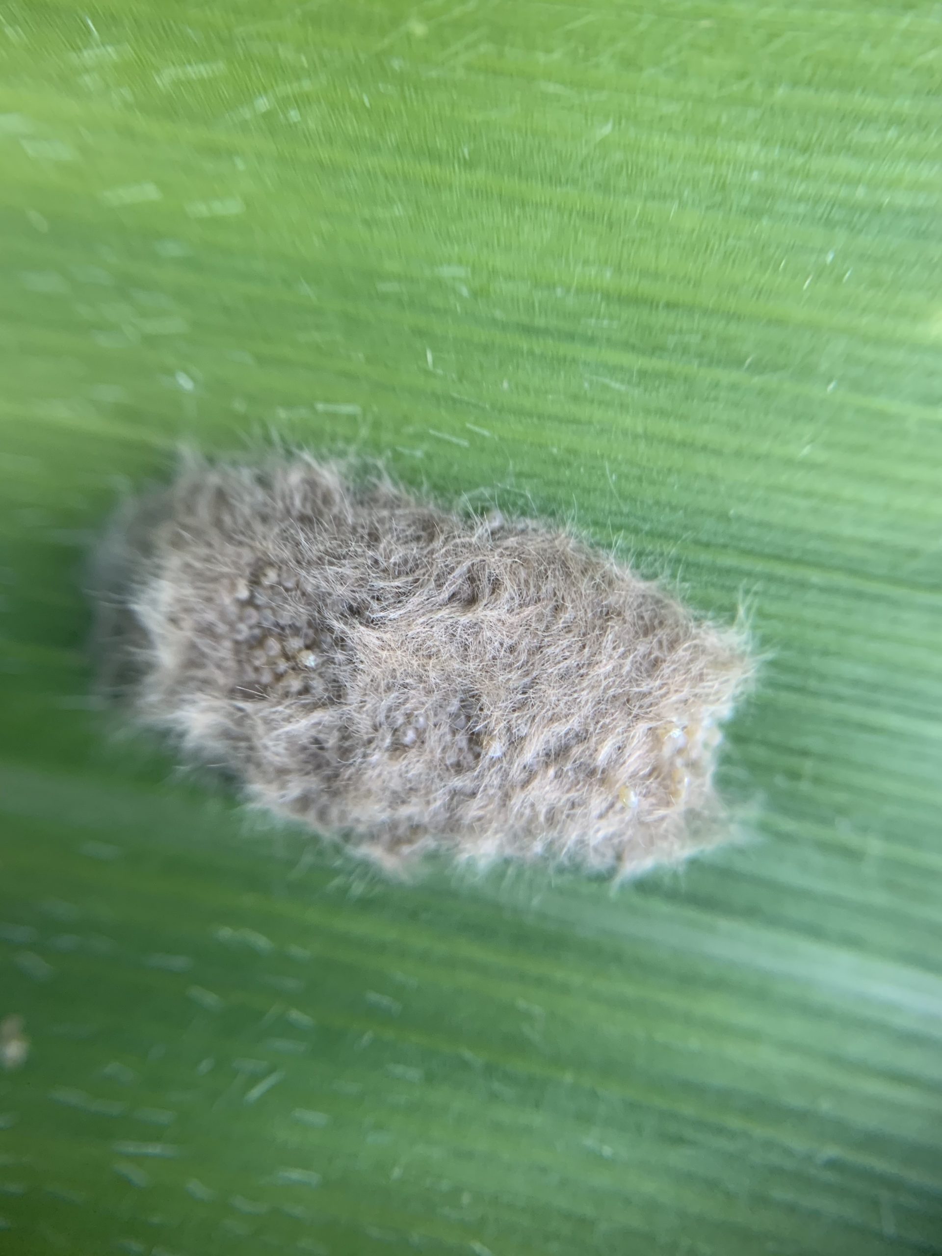 The pale yellow eggs are laid in ‘furry’ clusters of 100-200. Individual eggs are less than 0.5mm in diameter, and turn from pale to brown as the larva develops inside. Scales covering the mass may give it a silvery or grey ‘furry’ appearance, although some egg masses are laid without scales.