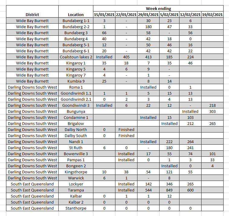 Latest fall armyworm pheromone trap counts in Queensland. (Updated: 18/11/2020)
