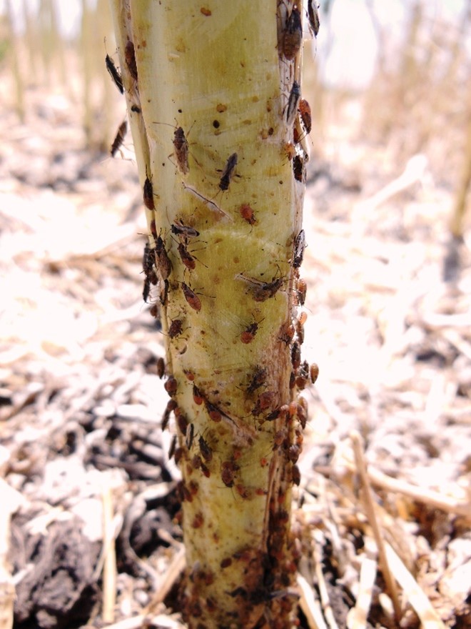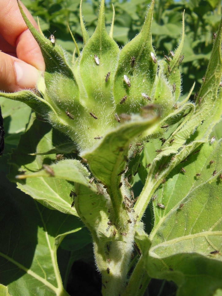 These bugs have a wide host range, including many weed species. Crops most commonly affected include sunflower, sorghum, canola and safflower. In years of heavy infestations, they can also be found in other crops, including wheat and legumes.