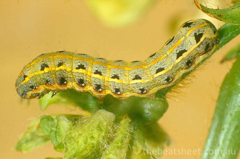 Cluster caterpillar (Spodoptera litura) is an armyworm species with a wide host range, including pulses and cotton. It is most common in warmer climates.