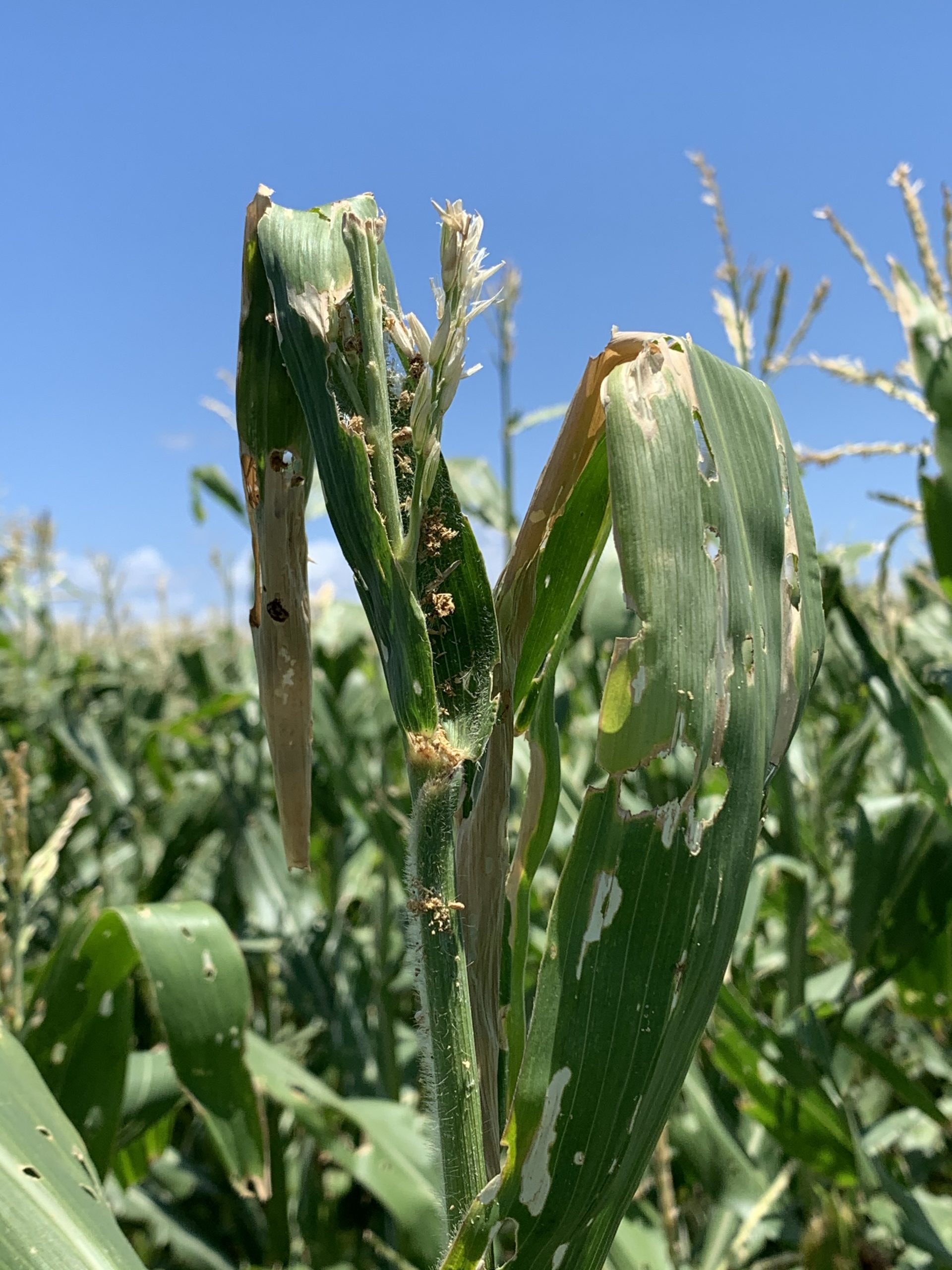 - Tassel damage caused prior to emergence by FAW feeding in the whorl