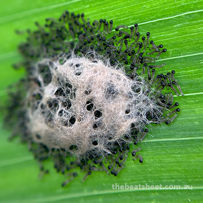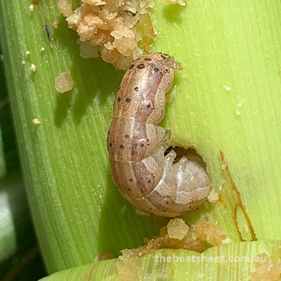 Young larvae (up to about 3rd instars) can look very similar to young helicoverpa and other armyworm species. Larger larvae are more easily distinguished (see FAW ID page).