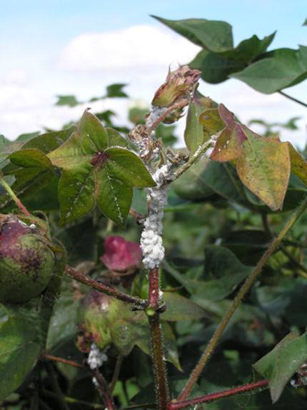This year, a relatively mild winter combined with a wet spring has encouraged higher than usual numbers of wild hosts that support overwintering mealybug populations. As these wild hosts are dying, mealybug are moving onto cotton. Initial infestations are also common on ratoon/volunteer cotton in the field even before the main cotton crop is planted. Surveys have shown a link between mealybug incidence and the presence of alternate hosts.