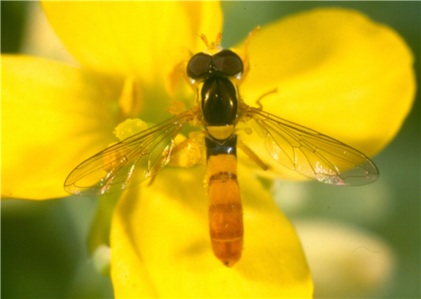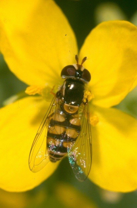 - Common hoverfly adult (9 mm) with bee-like appearance
