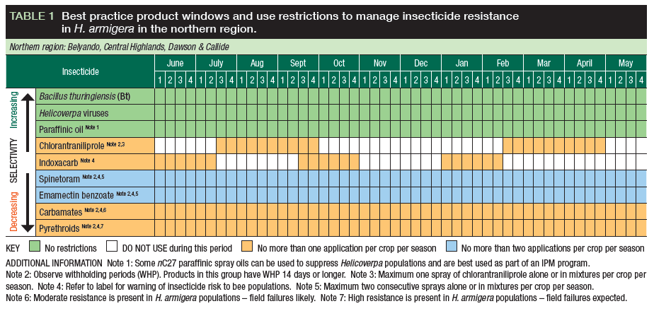 Best practice product windows and restrictions from H. armigera IRMS (Central and Northern Queensland)