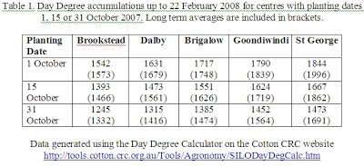 The Downs is considered a marginal area for problems with SLW because in an average season there is not enough heat and generally too few generations to create a problem. There is a perception that the 2007/08 season has been cooler than normal. Day Degree accumulations indicate that 2007/08 has been marginally cooler than average (see Table 1). Surprisingly, it has not been as cool as many have expected.